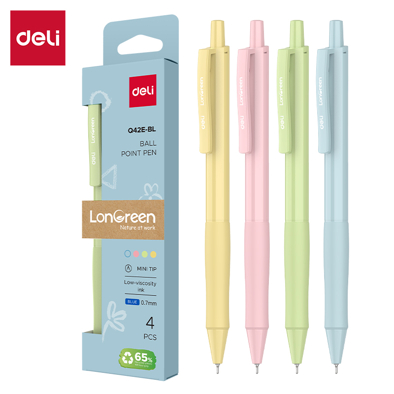 Długopis kulkowy Deli EQ42E LonGreen to ekologiczne i wygodne narzędzie do codziennego pisania – płynny tusz, precyzyjna końcówka i komfort użytkowania.