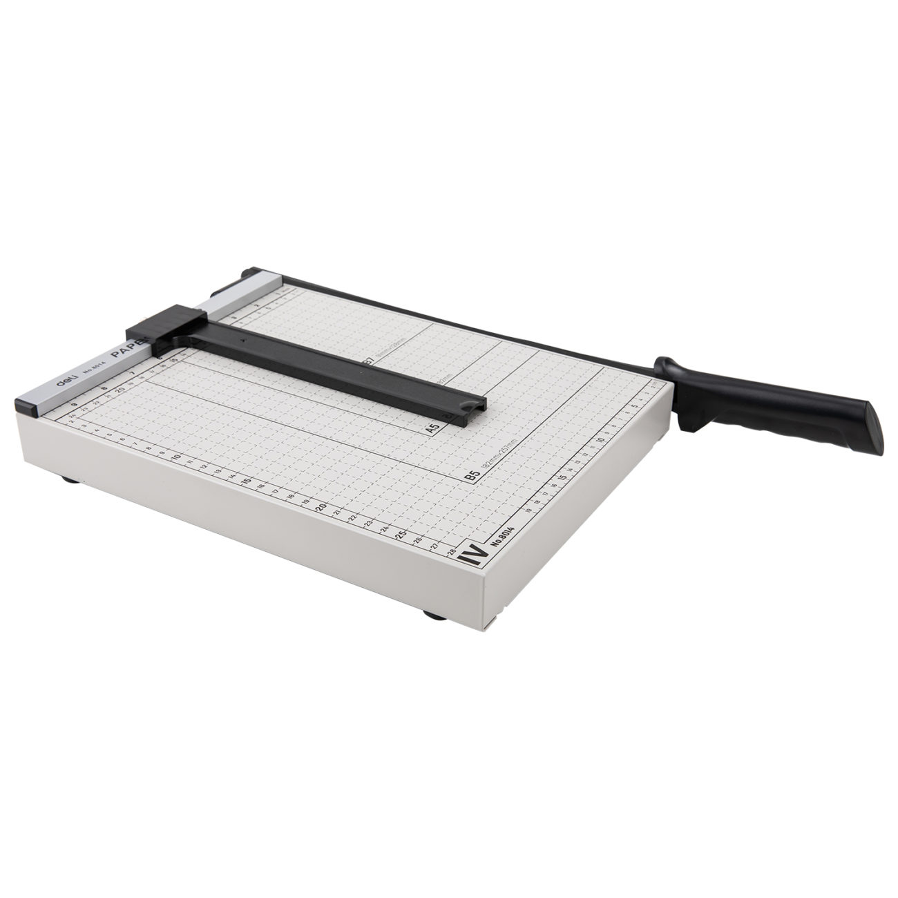 Profesjonalna gilotyna do papieru Deli E8014 – stalowa konstrukcja, format A4, precyzyjne cięcie do 12 arkuszy.