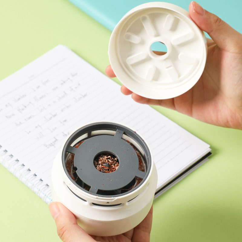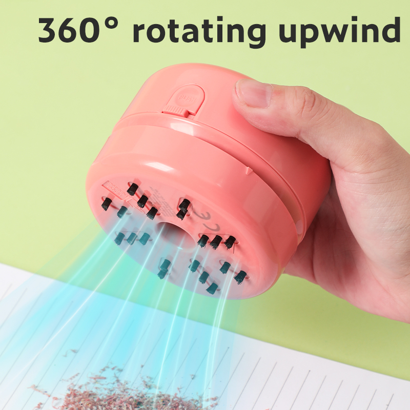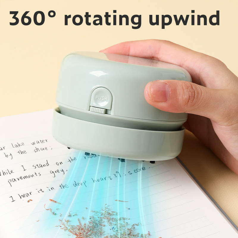 Mini odkurzacz do biurka to praktyczne i poręczne urządzenie, które szybko usuwa kurz, okruchy i ścinki gumki, pomagając utrzymać czystość w miejscu pracy lub nauki.