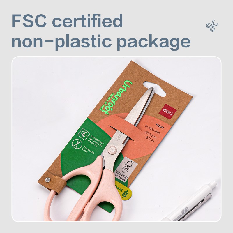 Nożyczki UrbanRoot EM641 wykonane z materiału na bazie słomy pszennej przeznaczone do codziennego użytkowania biurowego z uwzględnieniem rozwiązań ekologicznych.