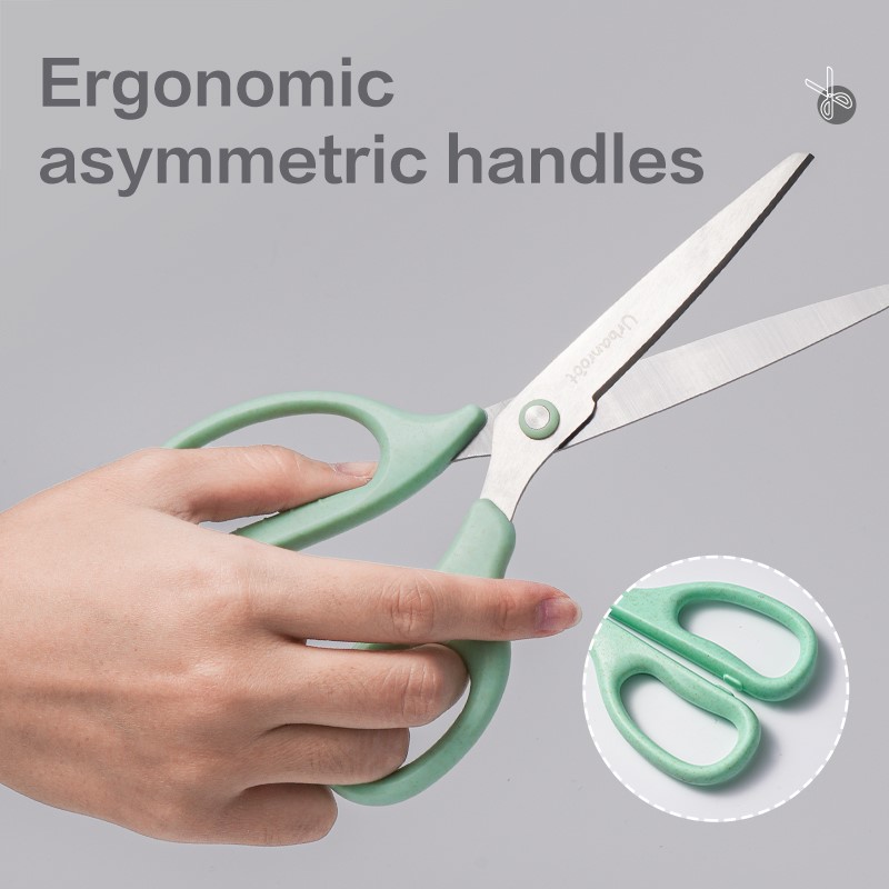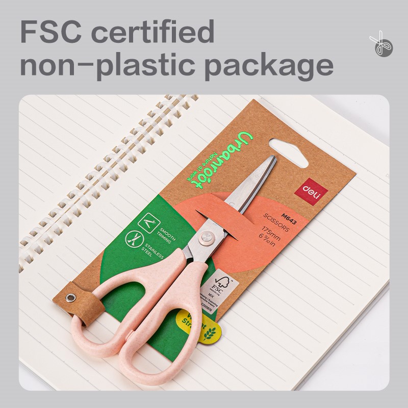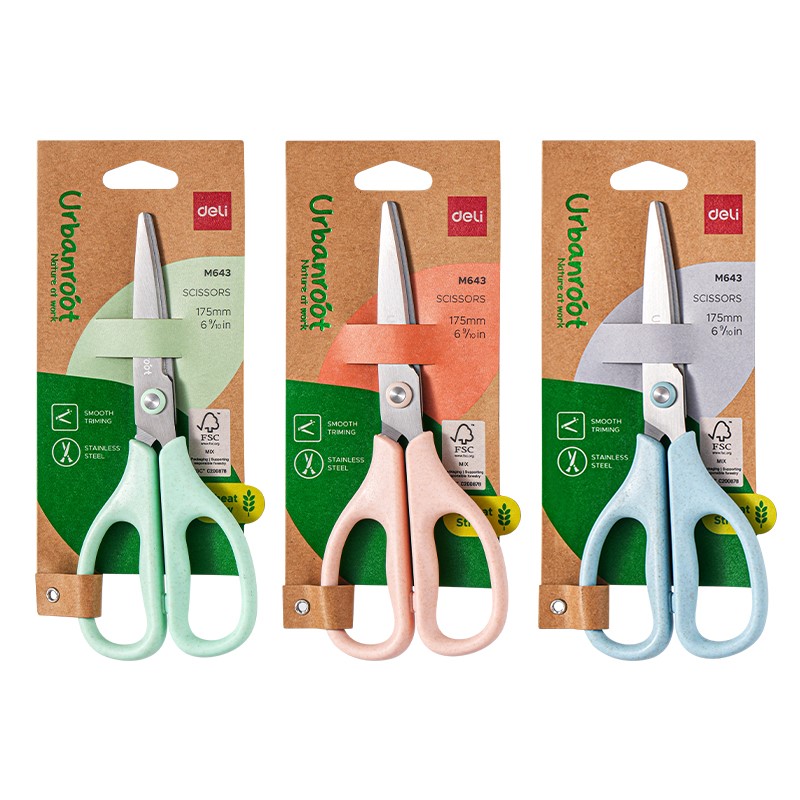 Nożyczki UrbanRoot 175 mm z uchwytami wykonanymi z materiału na bazie słomy pszennej stanowią ekologiczne rozwiązanie do codziennego użytkowania w biurze i szkole.