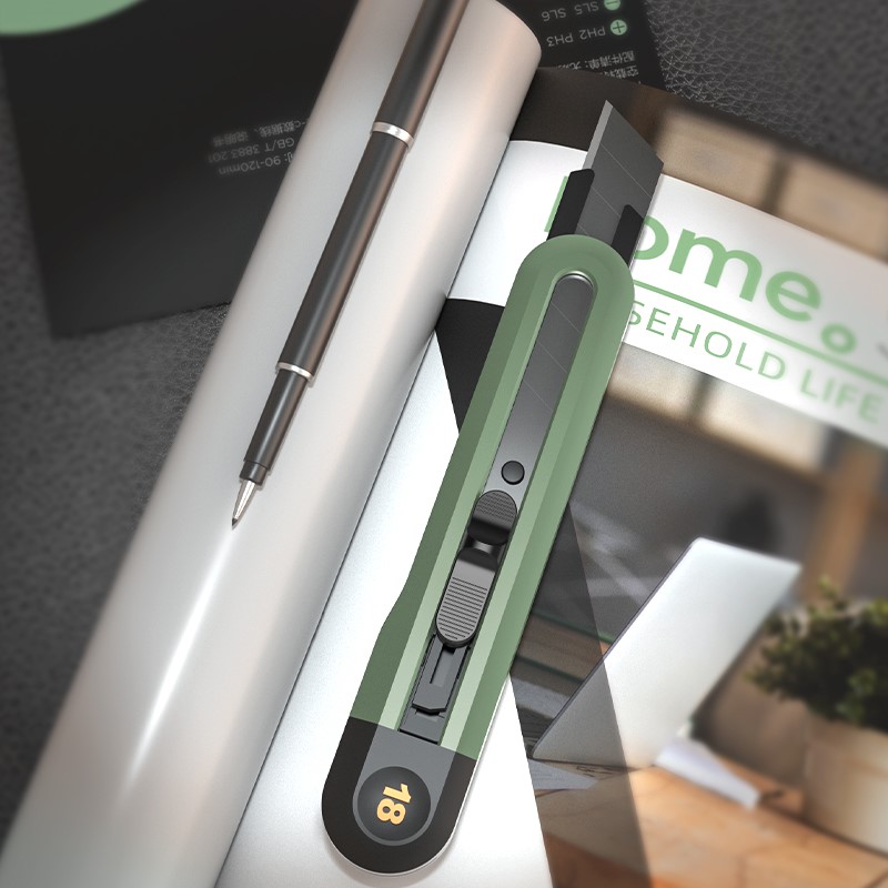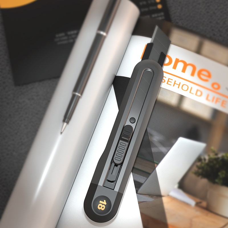 Nożyk Deli4018 z ostrzem łamanym przeznaczony do precyzyjnego cięcia papieru, kartonu i materiałów technicznych.