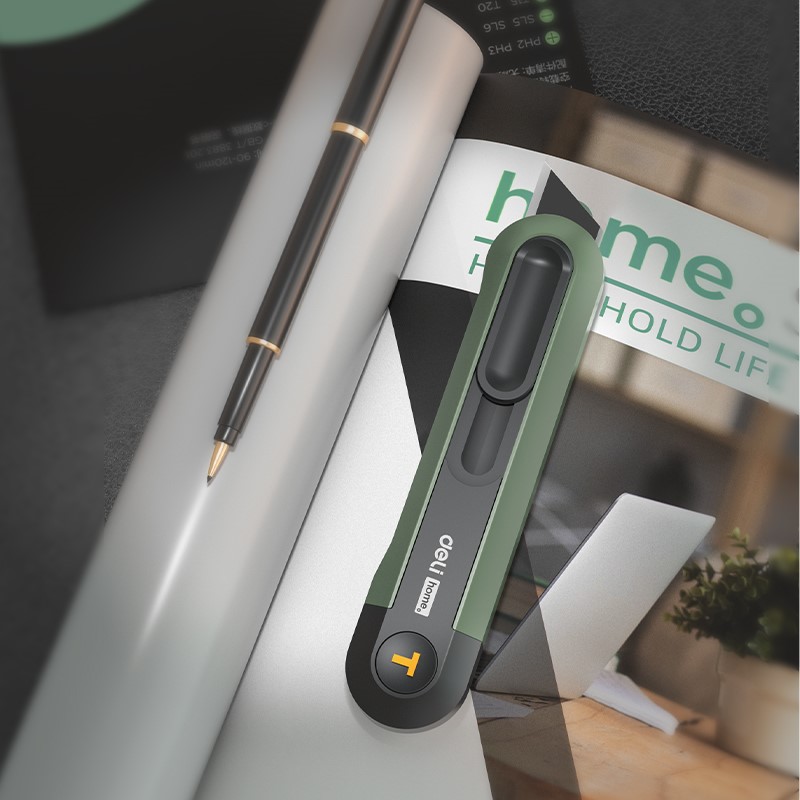Nożyk Deli EHT4008 z ostrzem typu T przeznaczony do precyzyjnego cięcia papieru, kartonu oraz materiałów technicznych.