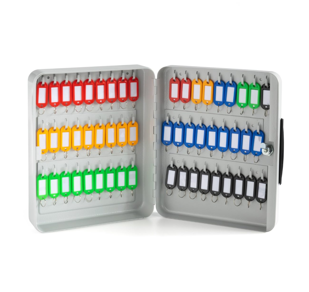 Solidna i pojemna szafka na klucze umożliwia bezpieczne przechowywanie aż 54 kompletów kluczy w jednym miejscu. Wykonana z wytrzymałej stali, doskonale sprawdza się w biurach, warsztatach, hotelach, szkołach oraz wszędzie tam, gdzie ważna jest organizacja i bezpieczeństwo.