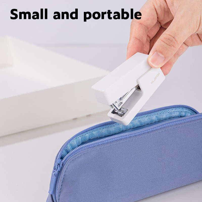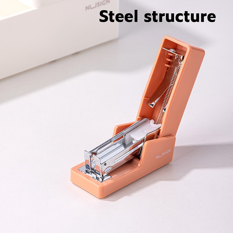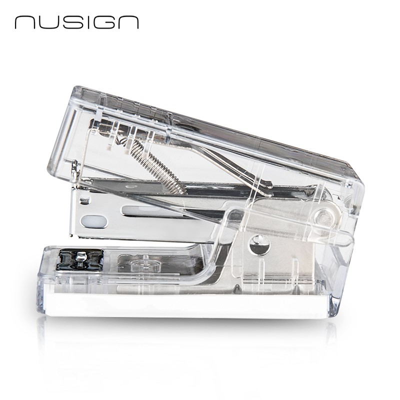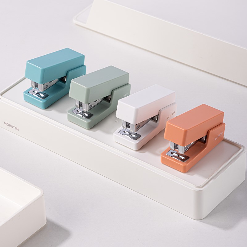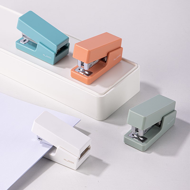 Mini zszywacz biurowy Nusign ENS083 to kompaktowe rozwiązanie do codziennego zszywania dokumentów, dostarczane w zestawie z zapasem zszywek.
